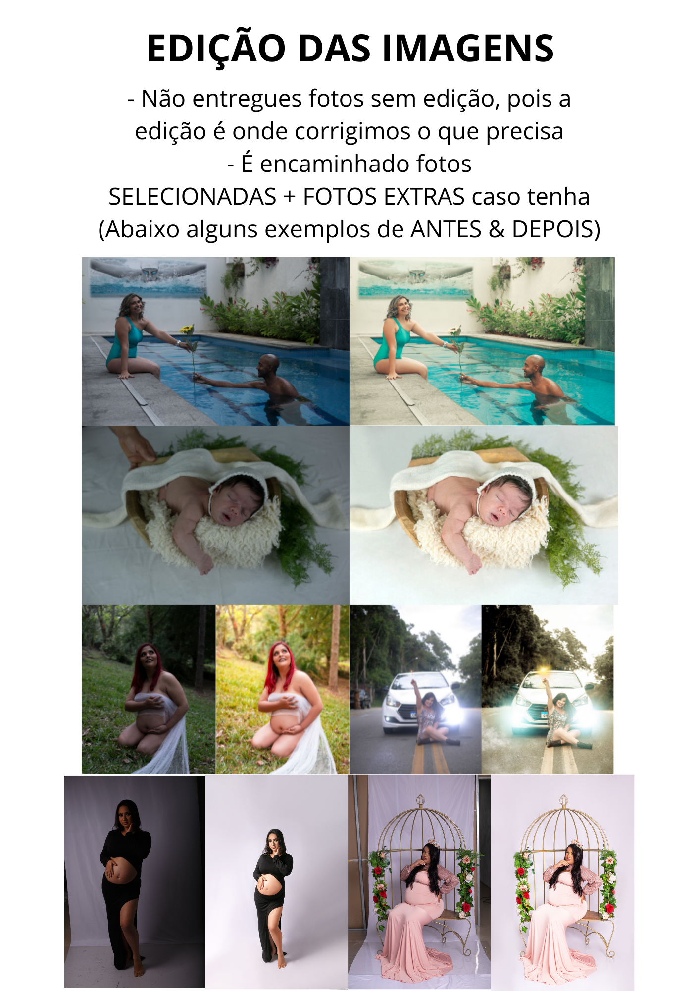 - Prazo máximo de 18 dias úteis após seleção das fotos para entrega das fotos editadas