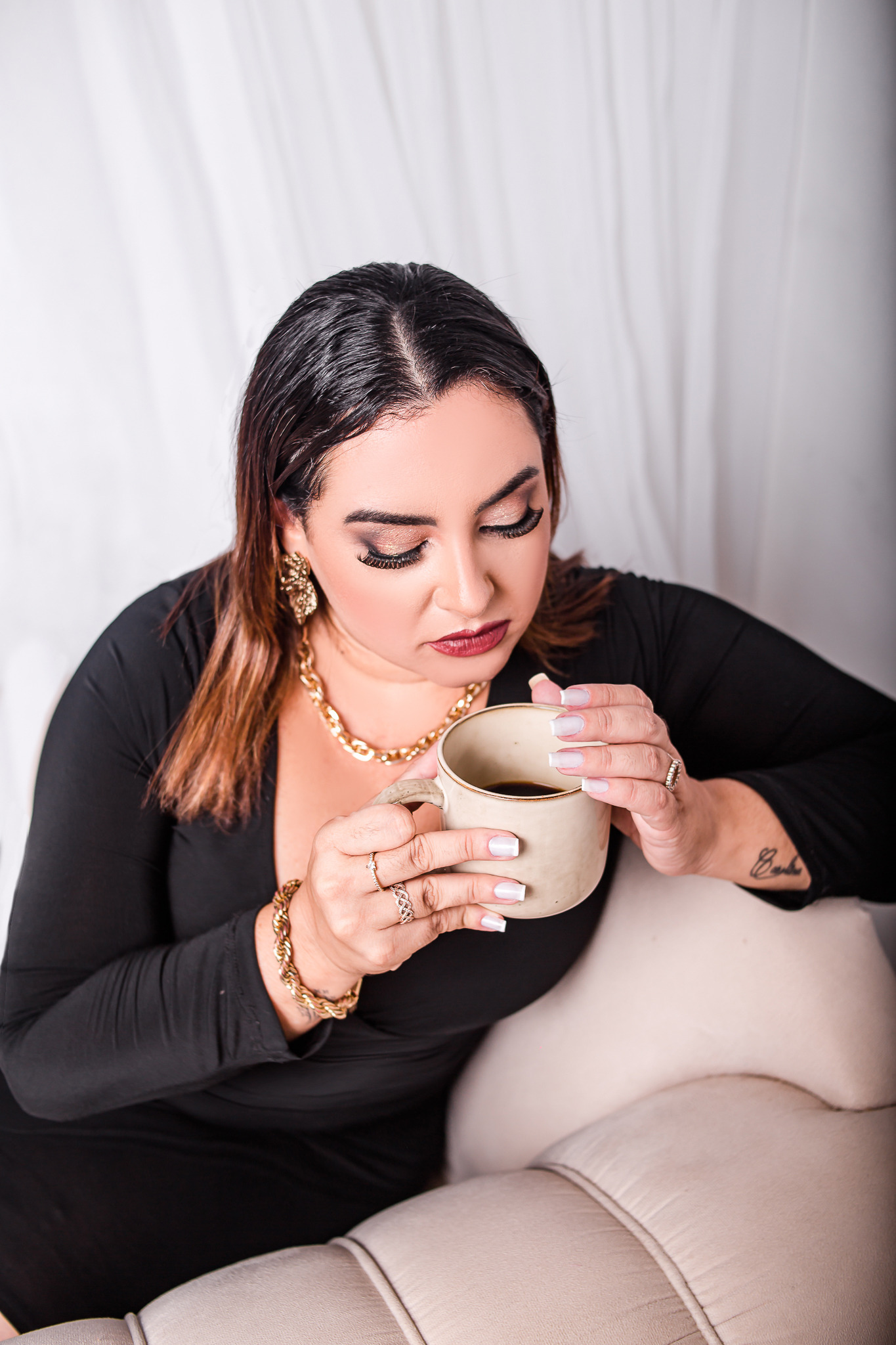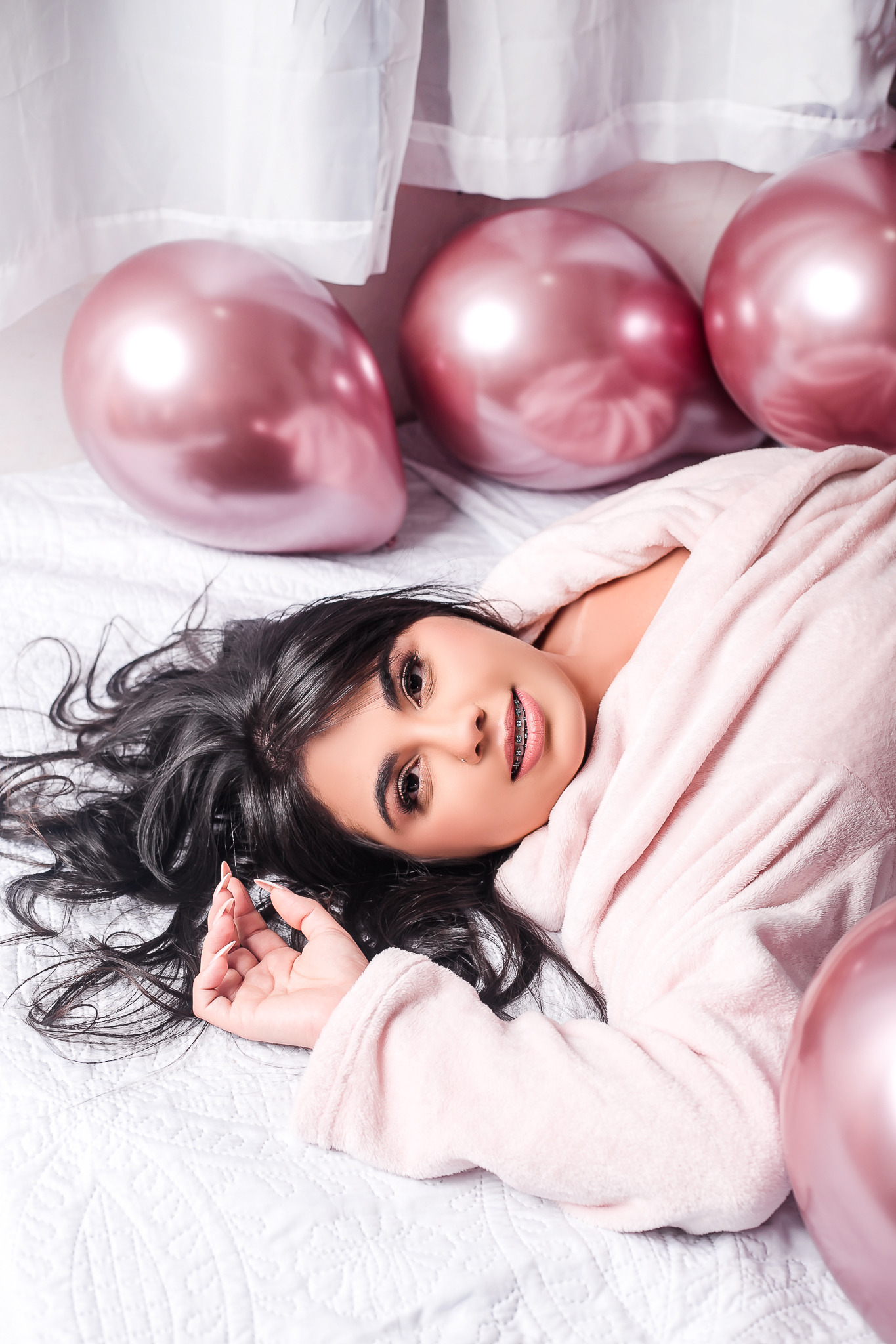 Ondas no cabelo para quem usa o cabelo liso, é só vir com o cabelo já liso. A fotógrafa faz os cachinhos pra você!