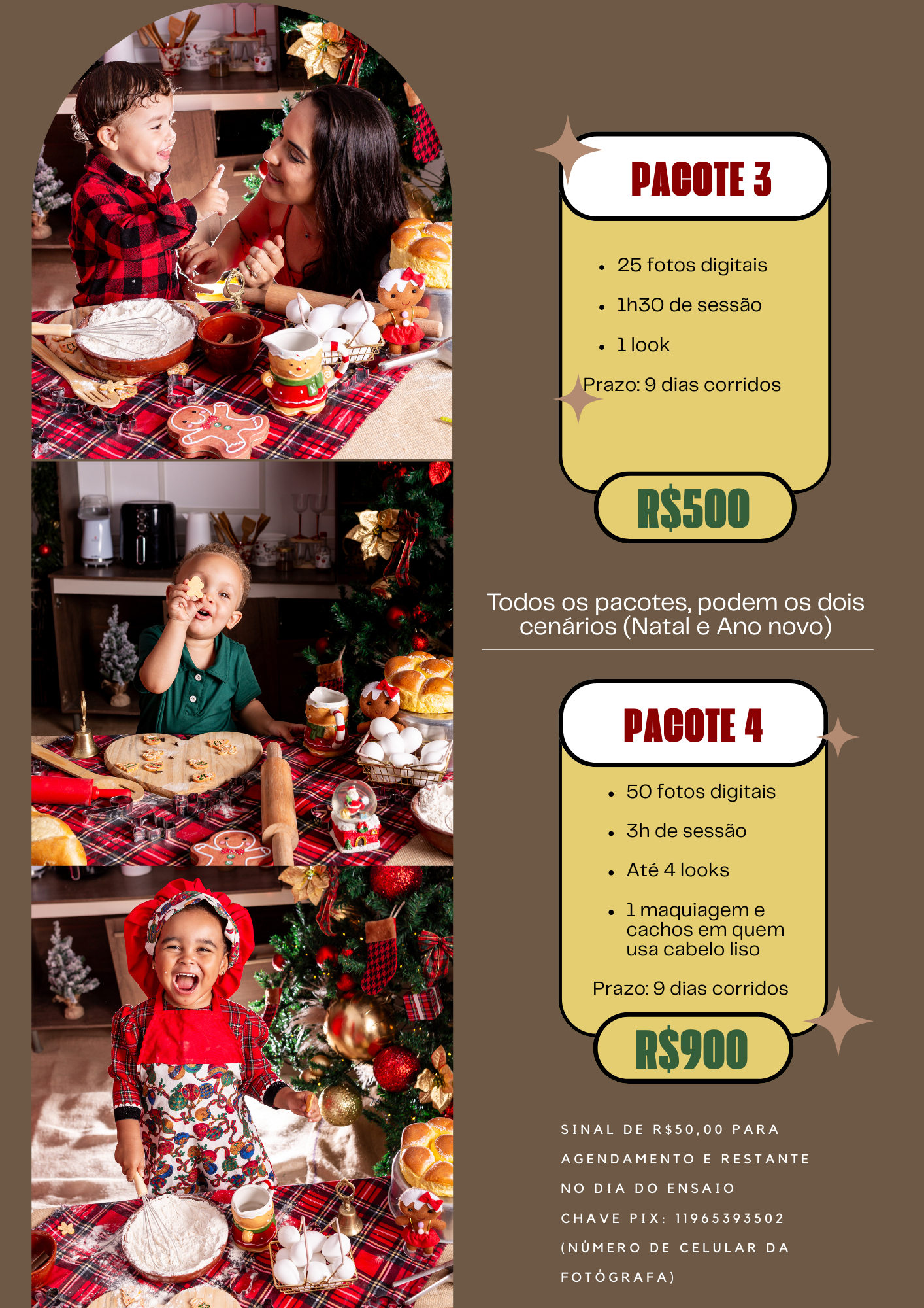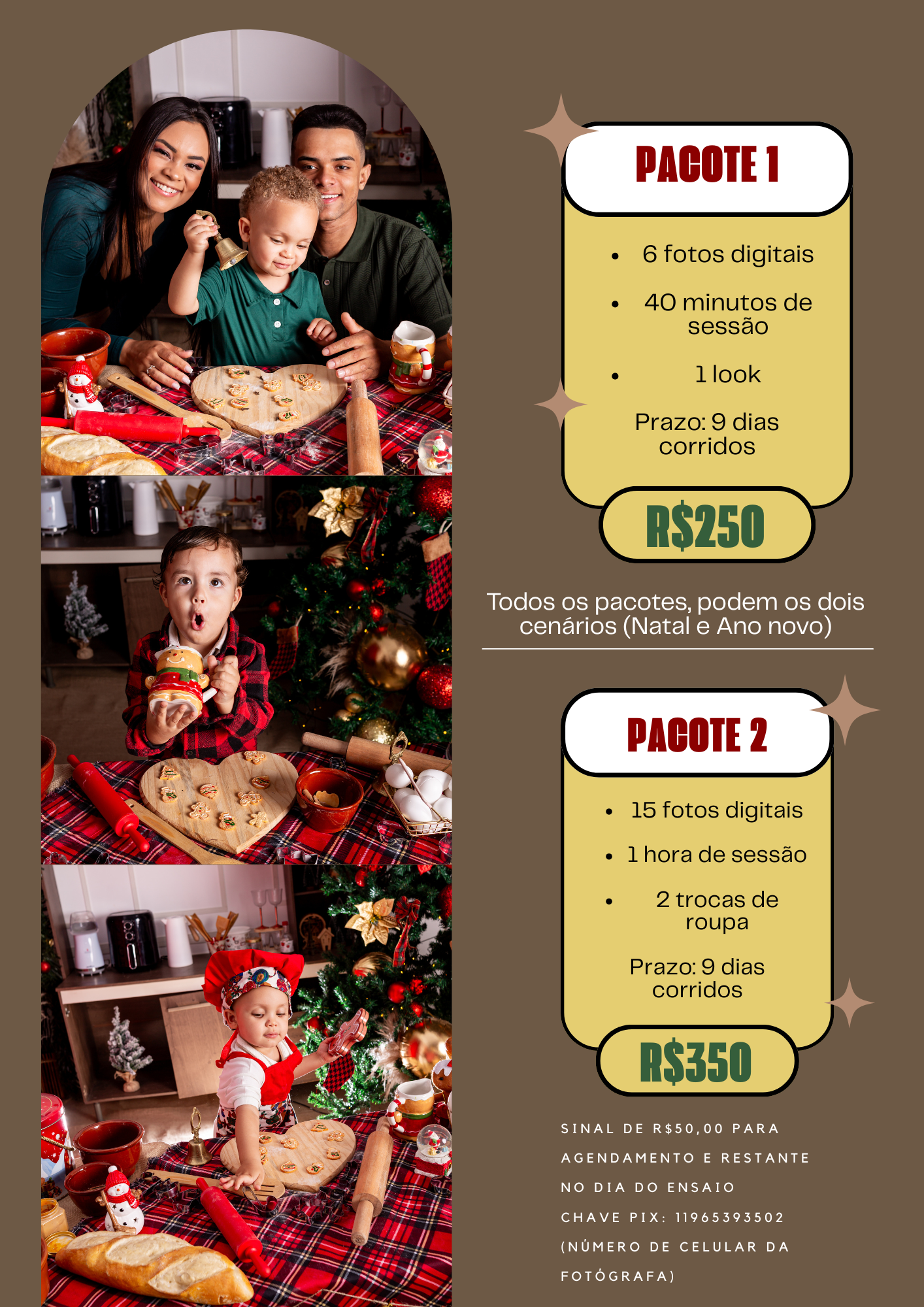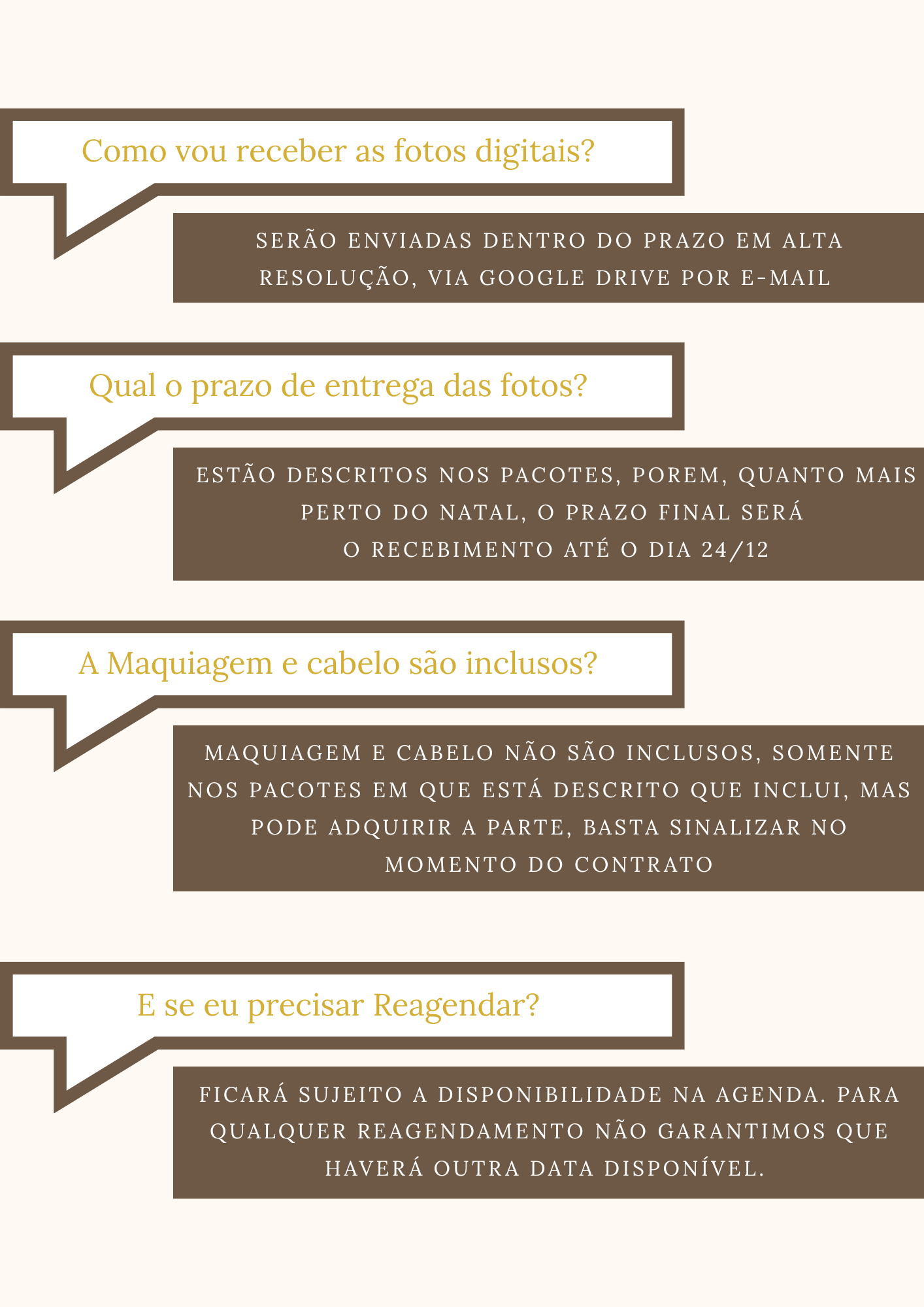 Tias/tios com filhos, será necessário escolher um pacote para que as crianças tenham suas fotos sozinhos e com os pais conforme pacote(pode ser no mesmo horário, com aviso prévio)