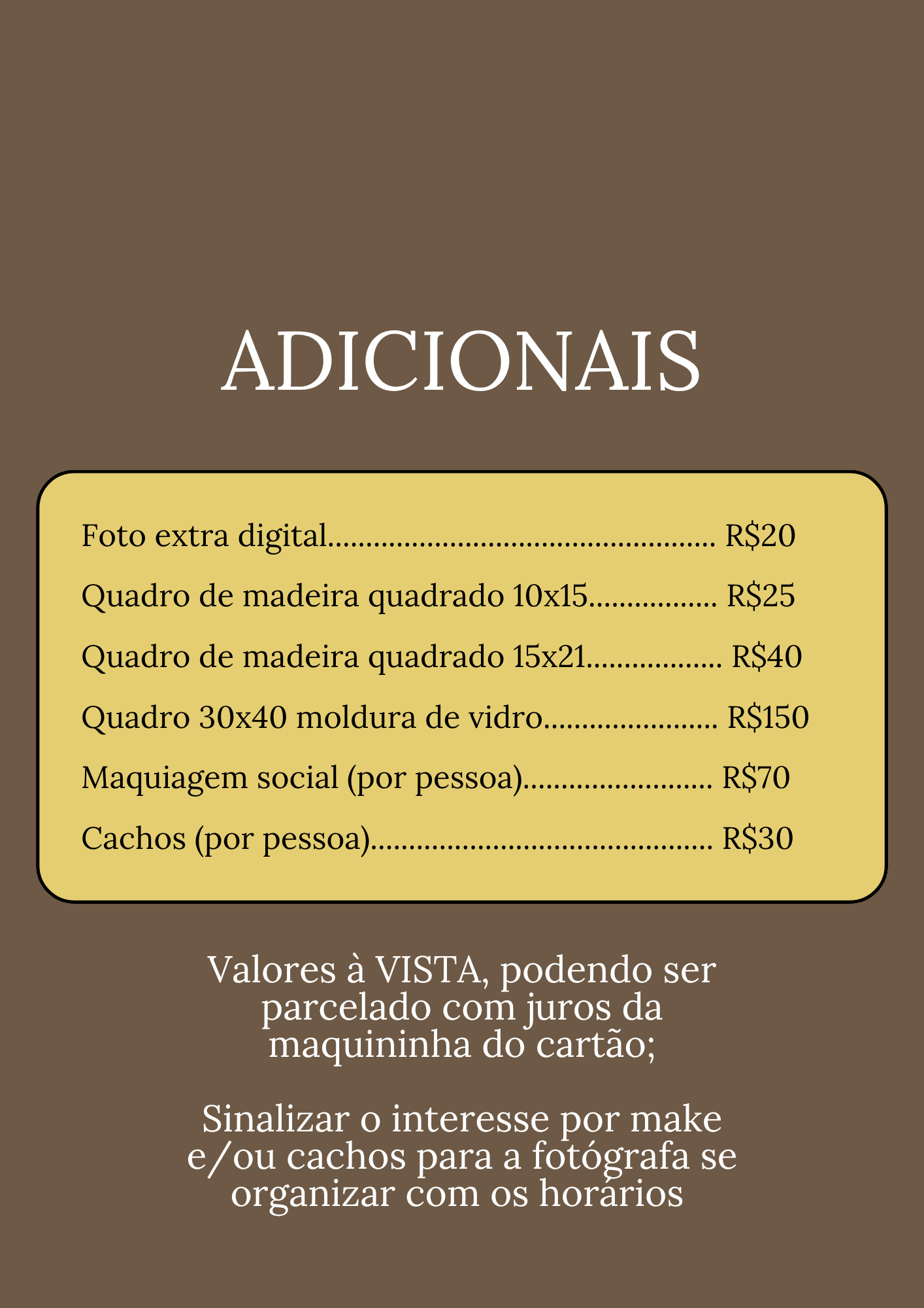 NÃO SÃO ENTREGUES FOTOS SEM EDIÇÃO, APENAS CONFORME PACOTE E ADICIONAIS CASO TENHA